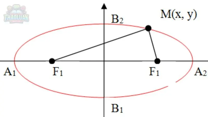 Ví dụ: Trong elip có phương trình \( \frac{x^2}{4} + \frac{y^2}{9} = 1 \), hai đỉnh được xác định bởi F1 và F2 là (-2, 0) và (2, 0).
